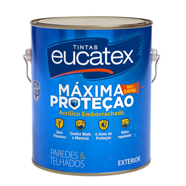 Máxima Proteção Tinta Acrílica Emborrachada é um produto de alta performance, formulada para proteger e impermeabilizar fachadas de casas e prédios. Possui máxima durabilidade e resistência. Impermeabiliza, sela e protege as paredes contra infiltrações causadas por fissuras de até 0,3mm. Possui aditivos extras contra algas, mofo e maresia. Uso externo.